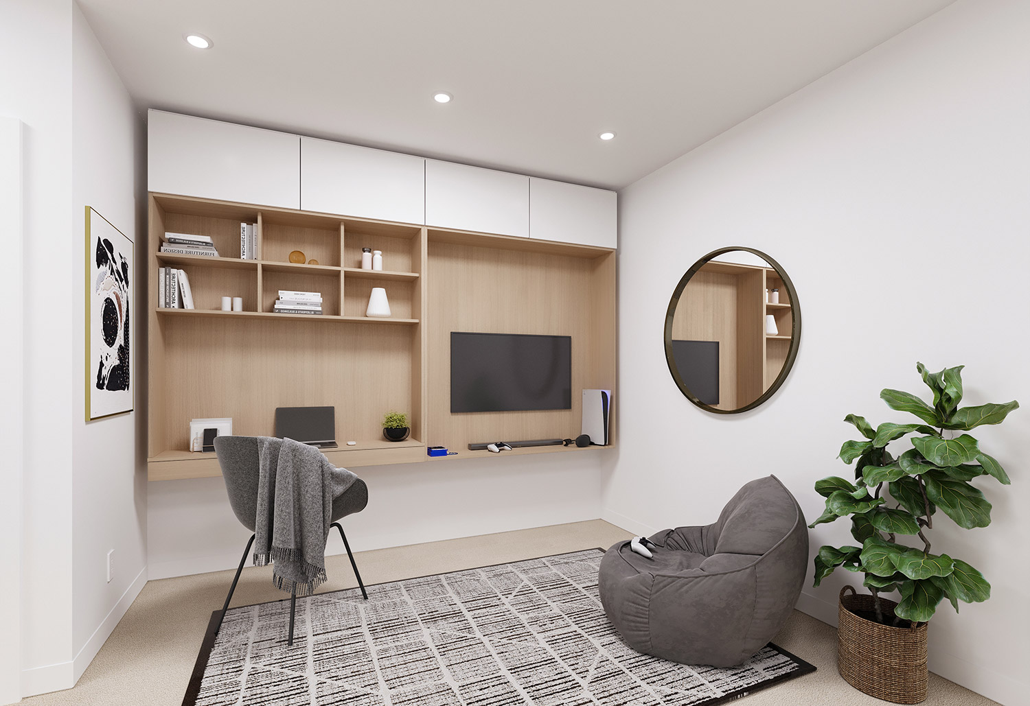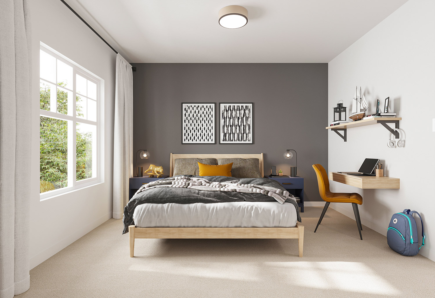 - Oversized, double pane windows bring in more natural light and reduce outside noise.